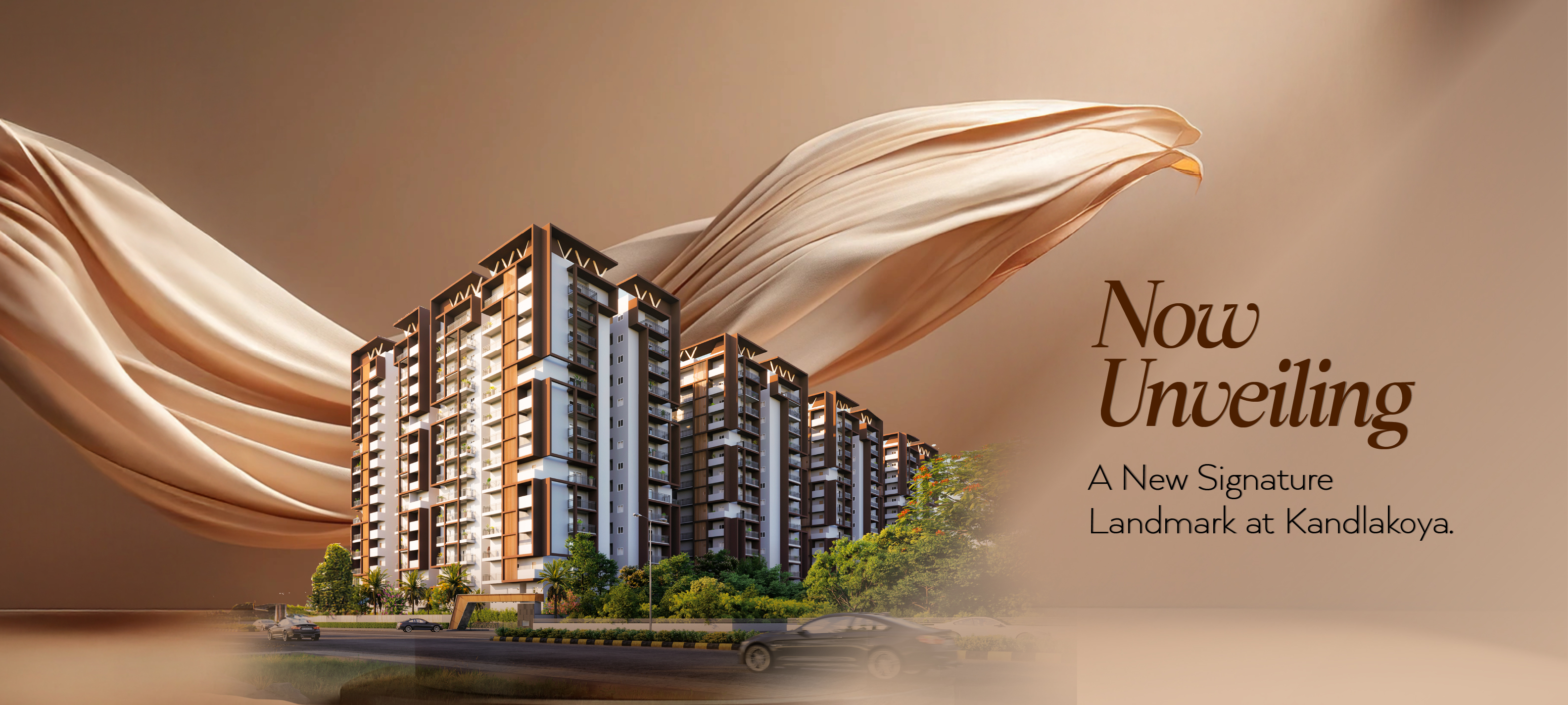 AITHRA is a premium 4‑acre community at Kandlakoya ORR Exit 6, offering 534 units of 2 & 3 BHK apartments across 2 blocks (G+14 floors), with unit sizes from 1,157 to 2,105 sft, an overall 8,50,000 sft built‑up area, and a 25,000 sft clubhouse (G+4 floors) designed for elevated lifestyle living.